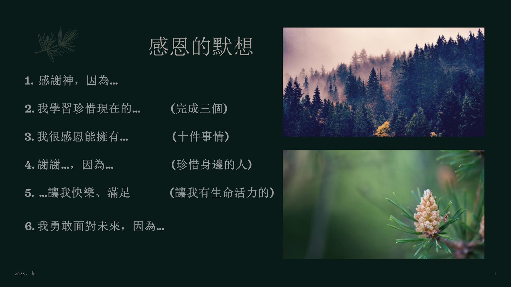 在這個感恩的季節,我們一起安靜思想和數算一年的恩典,珍惜神已經給的,向神感恩!